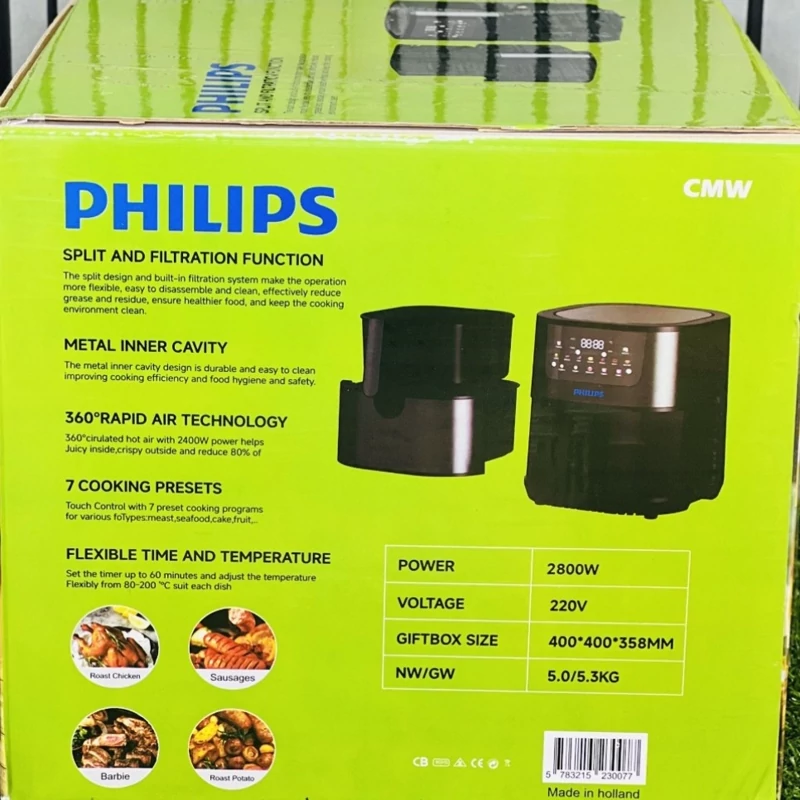 سرخکن مدل HD9270 از برند فیلیپس یکی از محصولات محبوب این شرکت است که با استفاده از فناوری Rapid Air کار میکند و به شما امکان میدهد تا غذاهایی کمچربتر و سالمتر تهیه کنید. در ادامه به ویژگیهای اصلی این سرخکن اشاره میکنم ✅. فناوری Rapid Air: این فناوری باعث میشود که هوا با سرعت بالا درون دستگاه چرخیده و مواد غذایی با استفاده از جریان هوای داغ پخته شوند. این باعث میشود غذاها بهصورت یکنواخت سرخ شوند و نیاز به روغن کمی داشته باشند. ✅ مدل HD9270 دارای ظرفیتی مناسب برای خانوادهها (حدود 1.2 کیلوگرم) است و میتواند برای تهیه غذاهای متنوعی مانند سیبزمینی سرخکرده، مرغ، ماهی و حتی شیرینی استفاده شود. ✅. صفحهنمایش دیجیتال: این سرخکن دارای صفحهنمایش دیجیتالی و کنترل لمسی است که به شما امکان میدهد بهراحتی تنظیمات دما و زمان پخت را انجام دهید. ✅. تنظیم دما و زمان: دما و زمان پخت در این مدل قابل تنظیم است و از طریق منوی دیجیتالی میتوان بهطور دقیق آن را کنترل کرد. دمای دستگاه از 80 تا 200 درجه سانتیگراد قابل تنظیم است ✅. مصرف روغن کمتر: با استفاده از این دستگاه میتوانید غذاهای خوشمزهای را با مصرف 90% کمتر روغن تهیه کنید، که به معنای داشتن غذاهای سالمتر است.
