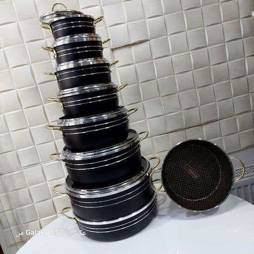 سرویس 16 پارچ برند اسبیکو درجه یک ✅سنگین وزن ✅زنبوری ✅بسیار باکیفیت ✅لعاب تضمینی ✅ضدخط و خش ✅ورق 1/9 ✅کیفیت تضمینی ✅جعبه دار ✅سایز قابلمه : 14″16″18″20″24″28″32 ✅سایز تابه : 18″28″32 ✅به سایز قابلمه ها دقت کنید⚠️قابلمه ها و تابه ها تا سایز 32 هستند قیم