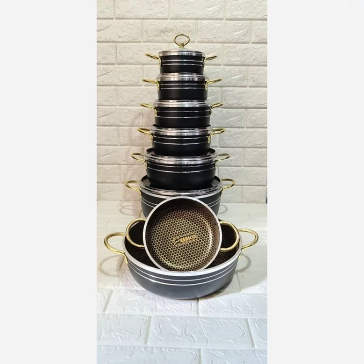سرویس تفلون 10 پارچه مارک کاسیو دسته طلایی (پس کرایه)