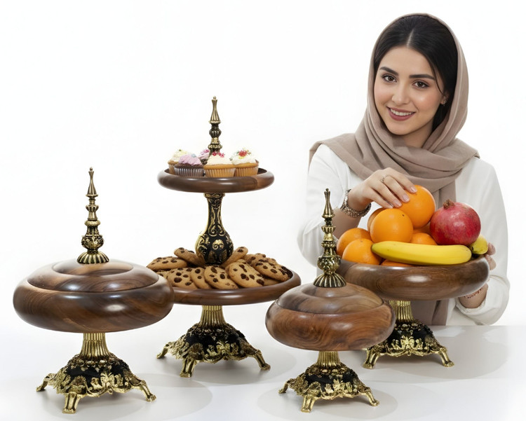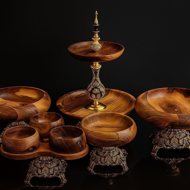 ❇️ سرویس پذیرایی ۵ تکه چوب گردو سوپر براق شکلاتی پایه نئوکلاسیک