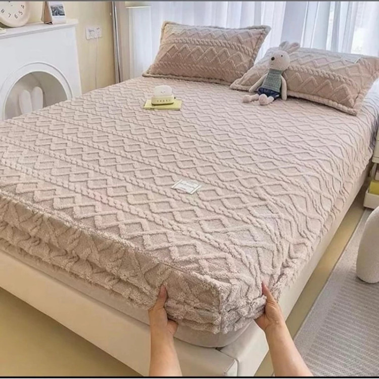 روتختی دونفره مخمل تمام کشدار طرح گیس بافت جنس درجه یک پارچه آستردار همراه با 2عدد رویه بالش(زیپ دار) سایز 200*180