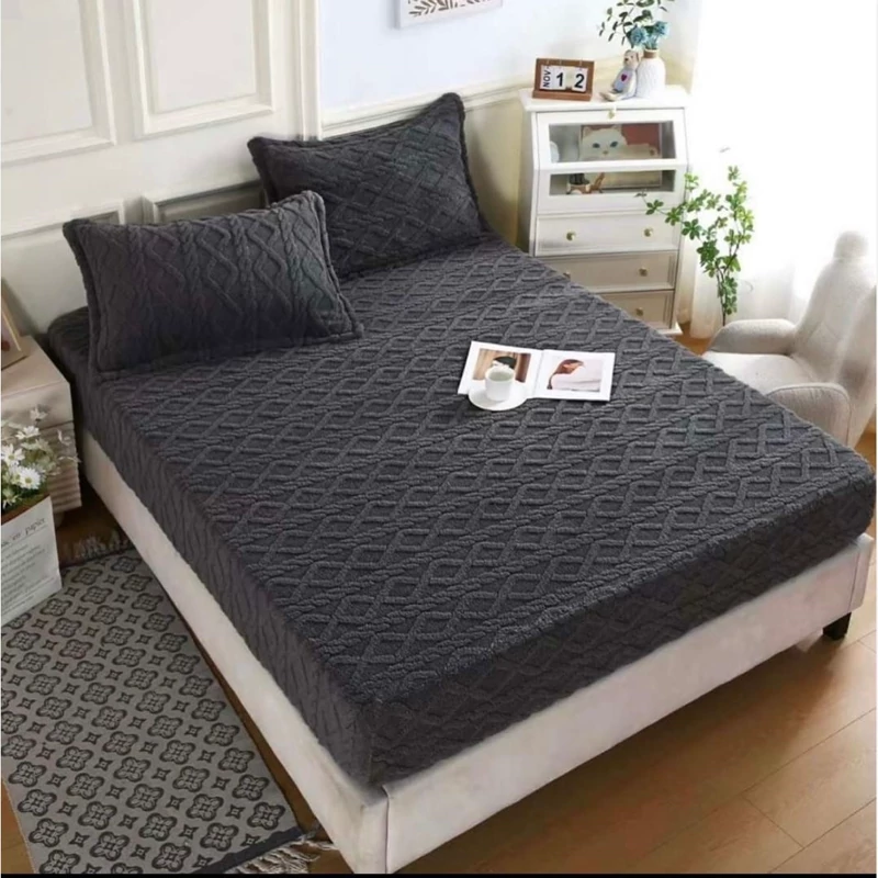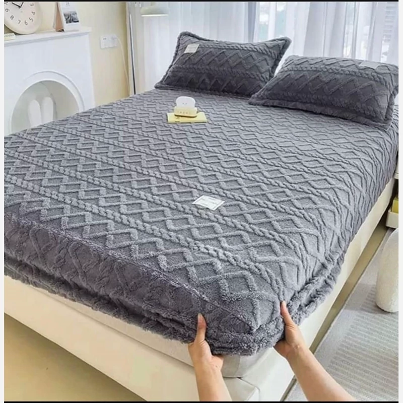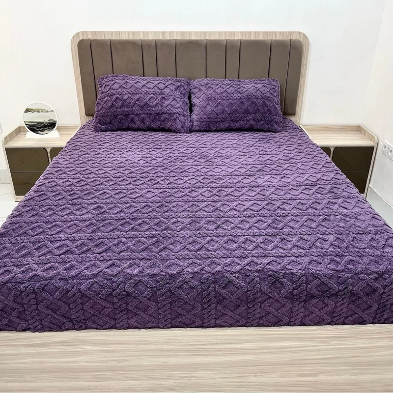 روتختی دونفره مخمل تمام کشدار طرح گیس بافت جنس درجه یک پارچه آستردار همراه با 2عدد رویه بالش(زیپ دار) سایز 200*180